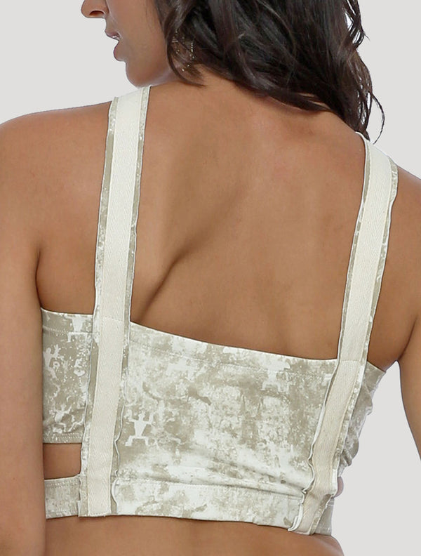 Un top deportivo estilo crop con un diseño llamativo, ideal como tu prenda para fiestas o festivales de verano.